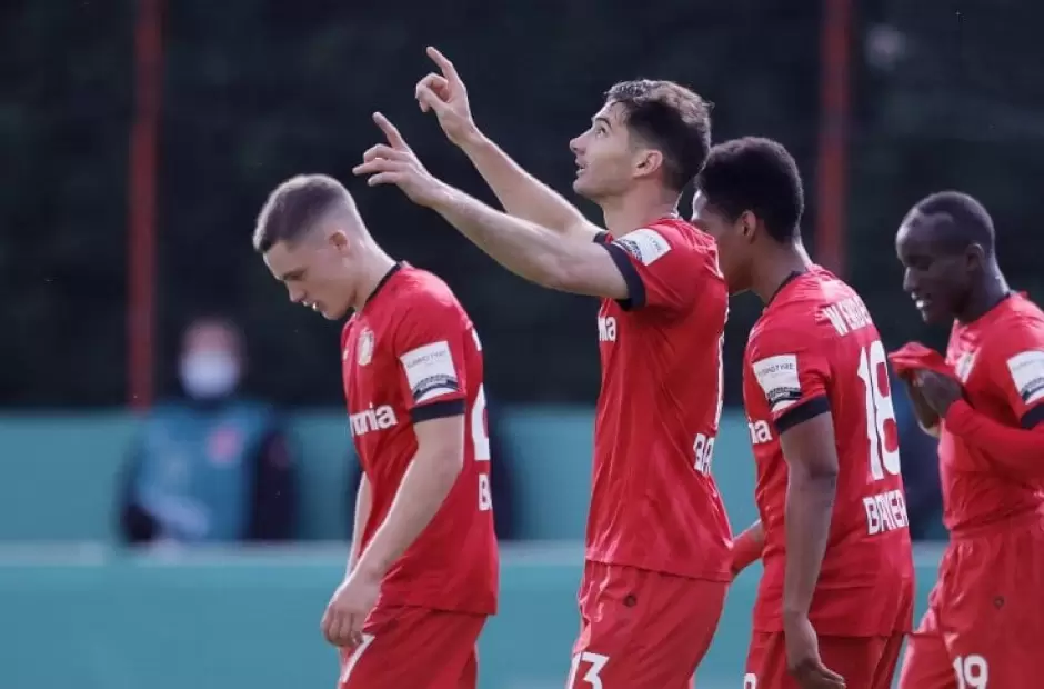 Luego, con el partido liquidado y a falta de 20 minutos para el cierre del partido, Exequiel Palacios reemplazó al chileno Charles Aránguiz y jugó oficialmente por primera vez desde el regreso de la actividad en Alemania. El Tucu se movió como uno de los dos volantes centrales del característico 4-2-3-1 que implementa el holandés Peter Bosz.