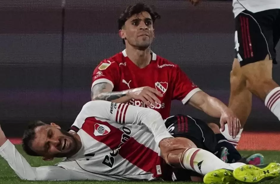Alarma en River: Germán Pezzella se lesionó y se fue de la cancha llorando en el clásico ante Independiente