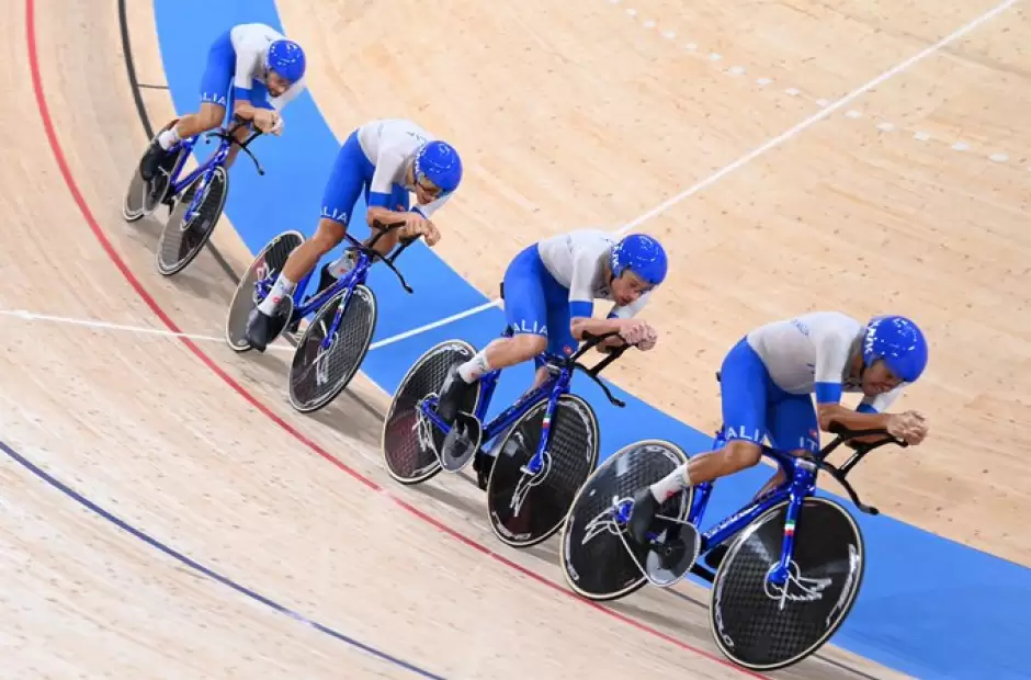 El tren italiano había liderado durante la primera mitad de los cuatro kilómetros, pero Dinamarca remontó y había logrado una ventaja que parecía decisiva. Y no solamente lograron el primer triunfo de Italia en los Juegos Olímpicos en esta disciplina desde Roma 1960, sino que también firmaron un nuevo récord mundial después de la plusmarca mundial que firmaron el martes durante las clasificaciones (4:42.07).