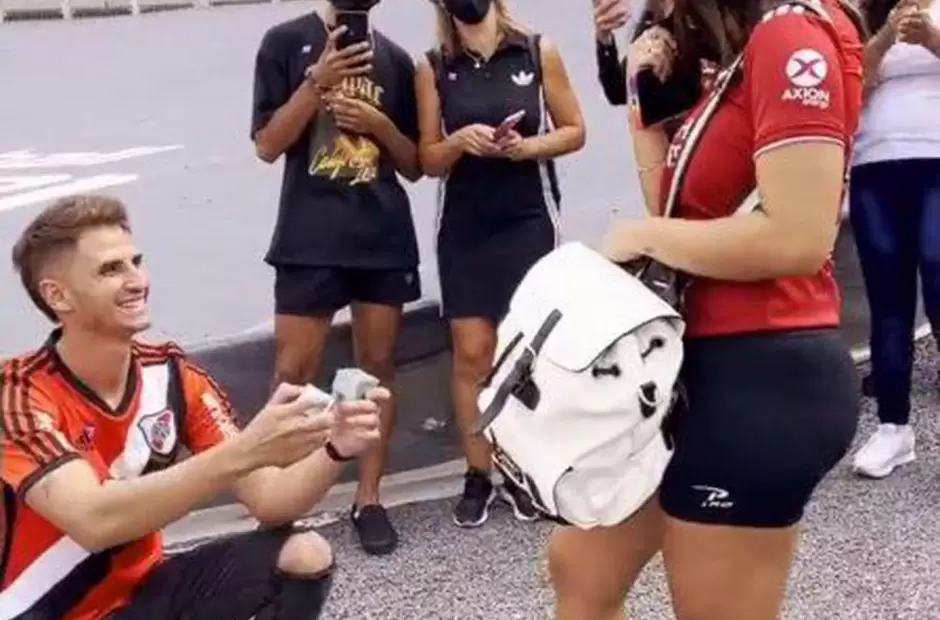 Una pareja de San Juan fue de paseo al estadio Monumental. Estaban recorriendo todas las instalaciones de River, el club de sus amores, hasta que llegaron al campo de juego. Allí, en medio de una visita guiada con la presencia de varios fanáticos del Millonario, el muchacho le propuso casamiento a su novia, quién aceptó inmediatamente.