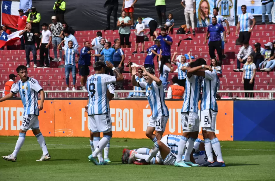 El equipo juvenil dirigido por Diego Placente debutó en la fase final del torneo que brinda cuatro plazas para el Mundial con un triunfo 2-0 sobre Chile con una nueva actuación destacada de Claudio Echeverri.