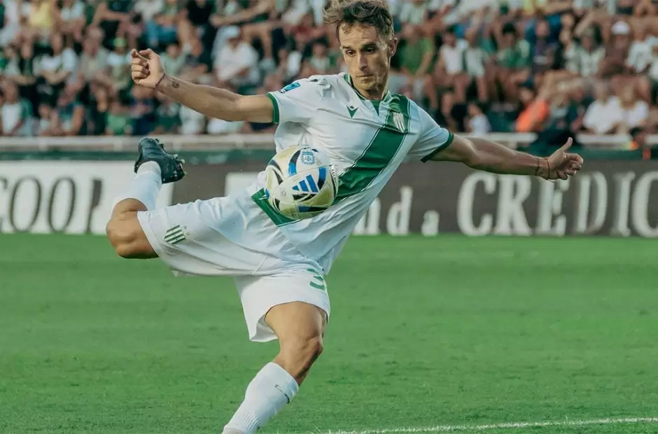 El primero que se impuso en las alturas fue su compañero de delantera Mauro Méndez, mientras que Perrotta solo tuvo que conectar con un potente testazo en el borde del área chica.