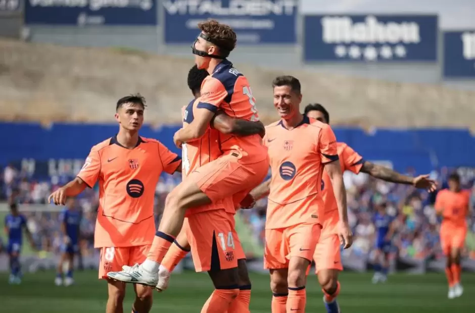 En el Coliseum Alfonso Pérez de Madrid, el Barcelona empezó ganando con el gol de Fermín López a los 46 minutos del primer tiempo. Tras una recuperación en el círculo central del defensor Mario Martín, la pelota le quedó a Pau Cubarsi que metió un exquisito pase en profundidad y al espacio para López que quedó mano a mano con el arquero David Soria, definió cruzado a su palo izquierdo y puso el 1-0.