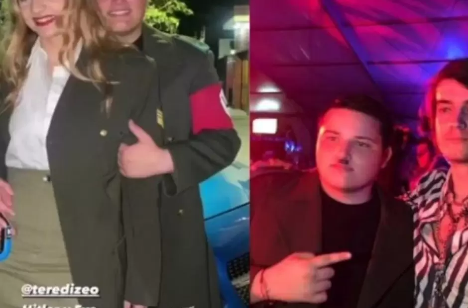 Hitler es Blas Martin, Eva Braun es Tere Di Zeo y el repudio es generalizado: el hijo de Mauro Martín y la hija del extinto Fernando Di Zeo y sobrina de Rafael, aparecieron en la fiesta de Halloween del boliche Bayside disfrazados como el dictador y asesino alemán y su mujer.