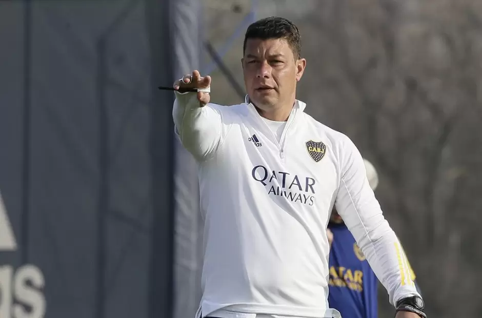 El equipo que paró Battaglia en la práctica del martes: Agustín Rossi; Luis Advíncula, Lisandro López, Carlos Izquierdoz, Agustín Sandez; Cristian Medina, Alan Varela, Agustín Almendra, Eduardo Salvio, Norberto Briasco y Cristian Pavón.