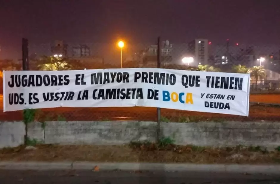 En vísperas del partido de este sábado ante Talleres de Córdoba en La Bombonera, TyC Sports mostró un fuerte pasacalle se hizo presente en las cercanías al estadio Alberto J. Armando. “Jugadores, el mayor premio que tienen ustedes es vestir la camiseta de Boca. Y están en deuda”, fue el mensaje que apareció por La Boca. La bandera, según se pudo reconstruir por una de las cámaras del lugar fue colgada poco antes de las 3 de la mañana por personas que bajaron de un auto, sacaron una foto y se retiraron. La gente de seguridad, al ver la situación, rápidamente se acercaron a sacar la bandera.