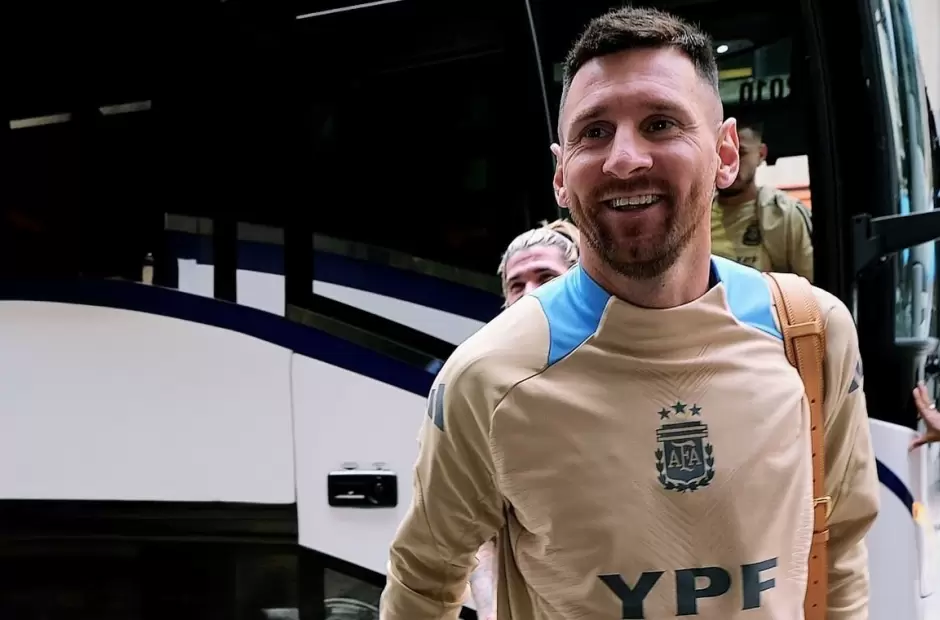 A través de las redes sociales oficiales, la Selección argentina compartió una foto de Lionel Messi recién llegado con bolso de mate en mano y una gran sonrisa. Además, el crack argentino compartió una imagen bajando del avión.