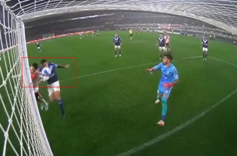 “Ojo con la mano”, se escuchó en la cabina del VAR inmediatamente después que la pelota ingresó a la portería custodiada por Lucas Hoyos. Ante este escenario, se le comunicó a Tobar que no reanudase el juego hasta que revisen todas las cámaras que tienen disponible para certificar si el cordobés había tocado el balón con su brazo en el gol del equipo millonario. “Es ahí. Haz un loop. Pega en la mano”, remarcó el AVAR antes de invitar al chileno a revisar la polémica de la noche en el Antonio Vespucio Liberti.