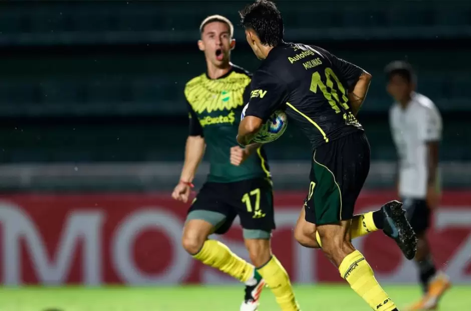 Tan solo diez minutos después, el mediocampista Aaron Molinas empató para los de Mariano Soso. En un desborde a fondo por la derecha y con bicicleta incluida, el delantero Agustín Hausch llegó a la línea final, tocó atrás para el solitario ingreso del ex Boca que le dio de llenó y marcó el 1-1.