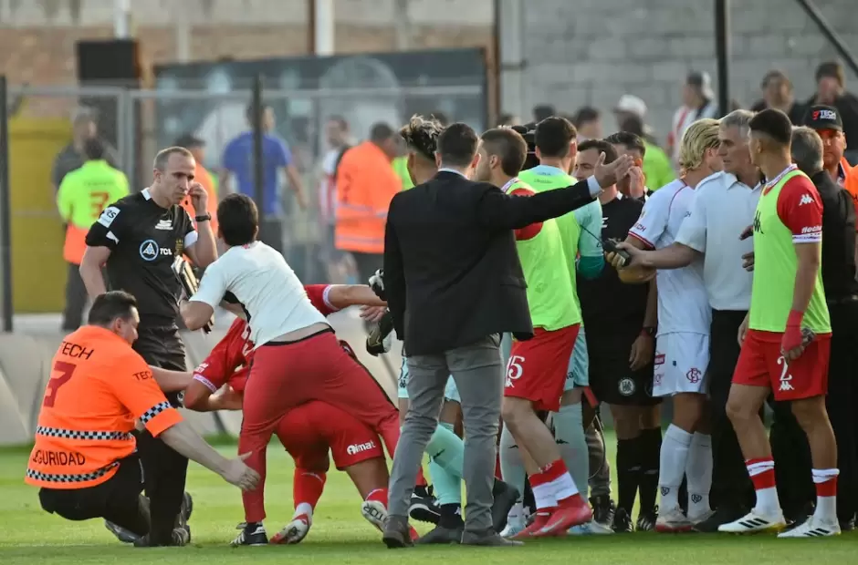 El altercado se dio minutos después del pitazo final, cuando un nutrido grupo de jugadores, ayudantes y el propio entrenador del "Globo" se acercaron a la posición del árbitro para cuestionarlo.