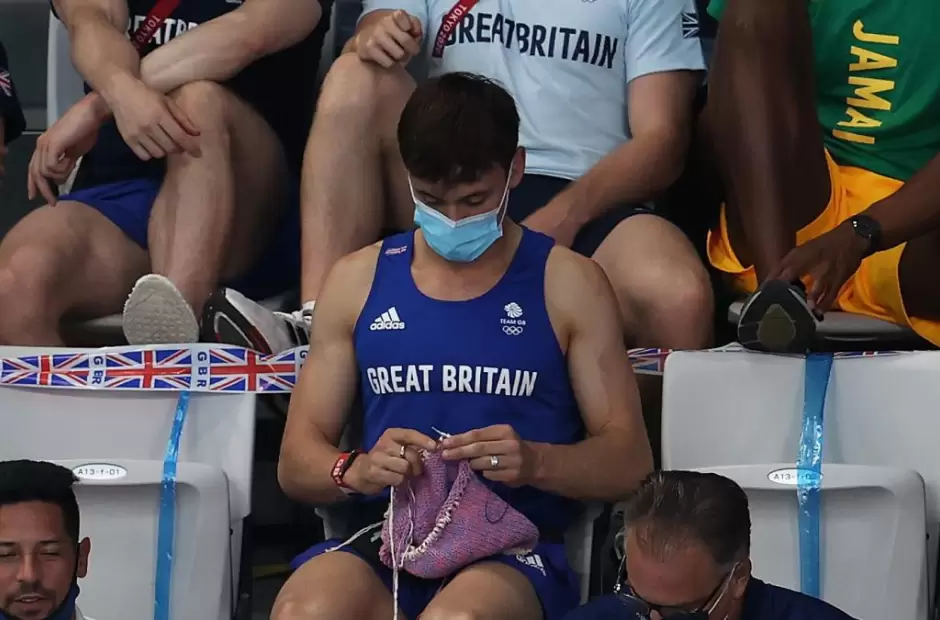 Tom Daley, el clavadista británico que se convirtió en medallista de oro en Tokio 2020, causó furor al ser visto tejiendo en la tribuna con una lana violeta mientras se llevaba a cabo la final individual desde la plataforma de 10 metros femenina.