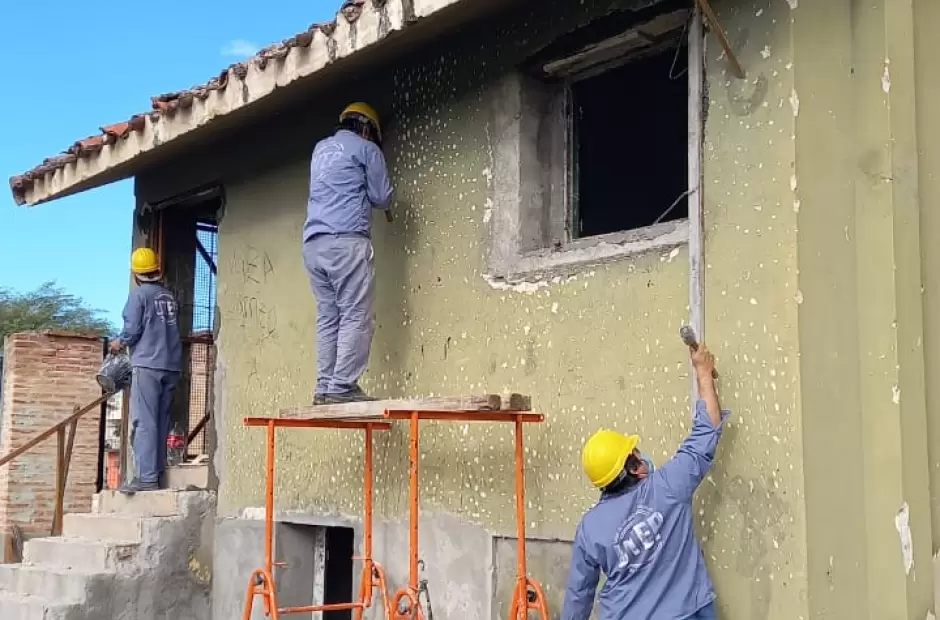 Esta vez, gracias a la ayuda del Movimiento Evita, que pusieron los materiales y la mano de obra, están trabajando en la casilla dónde funcionará la oficina de la sede. La obra está en un 70% de realización.