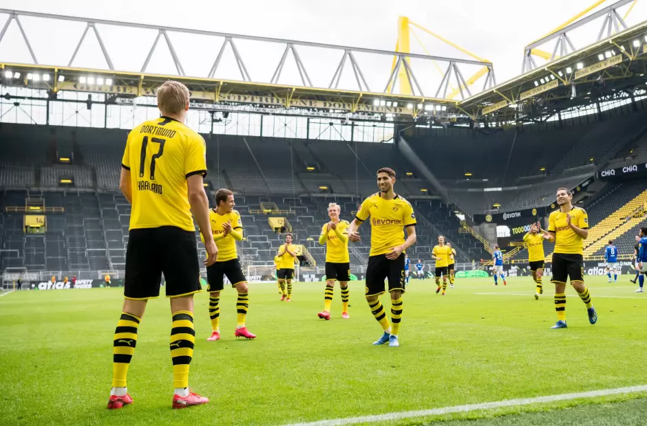 Haland, que llegó a la Bundesliga en enero pasado y once goles en nueve juegos, asistió para el segundo tanto del portugués Raphael Guerreiro, que festejó con un toque de codos en medio del silencio de un Signal Iduna Park desinfectado como la propia pelota.