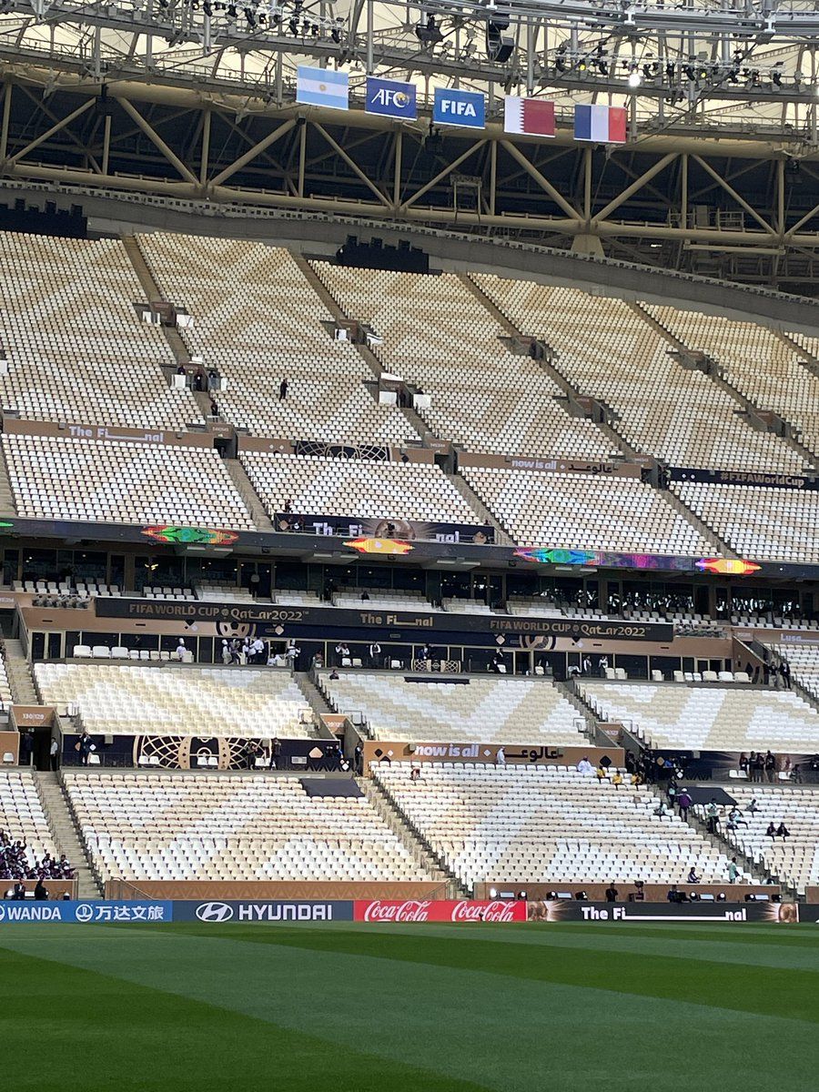A poco del pitazo inicial de la final del Mundial Qatar 2022 entre la Selección argentina y Francia, el Estadio Lusail, sede del partido definitorio, experimentó un cambio su estética para estar a tono con la fiesta del fútbol de la que será escenario.