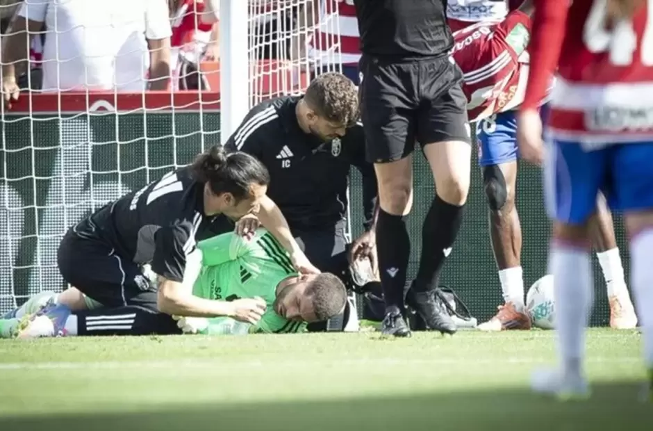 El guardameta del Granada padeció una conmoción cerebral junto con una fractura de mandíbula y mentón durante la derrota de su equipo frente al Almería. El incidente ocurrió tras un fuerte choque con el jugador brasileño Thalys, una acción que obligó a la inmediata intervención médica posterior al encuentro.