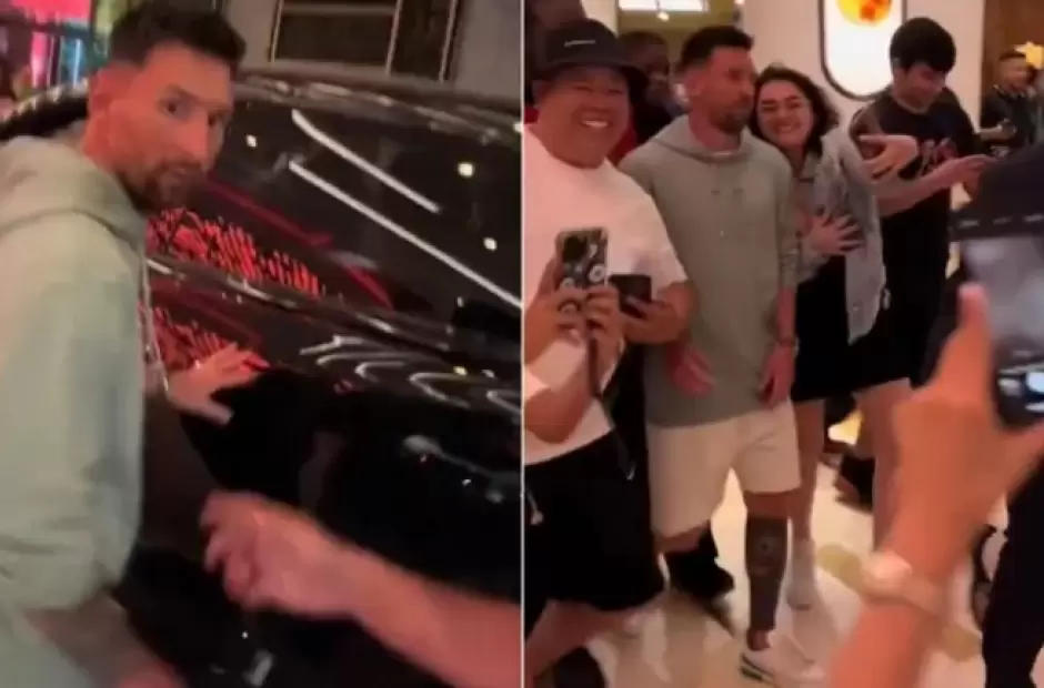 En las imágenes se pueden ver como la Pulga quiere salir rápidamente del centro comercial ante el acecho de una gran cantidad de seguidores. Pero eso no fue todo. Apareció otro video, en el que el capitán de la Selección argentina no muestra su mejor cara ante la llegada de otro fanático que sí pudo conseguir una selfie con el 10 de Inter Miami.
