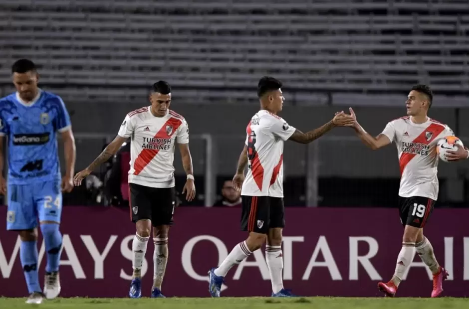 El once que saldrá en un rato será con: Franco Armani; Gonzalo Montiel, Lucas Martínez Quarta, Javier Pinola, Fabrizio Angileri; Enzo Pérez; Julián Álvarez, Ignacio Fernández, Nicolás De La Cruz; Matías Suárez y Rafael Santos Borré.