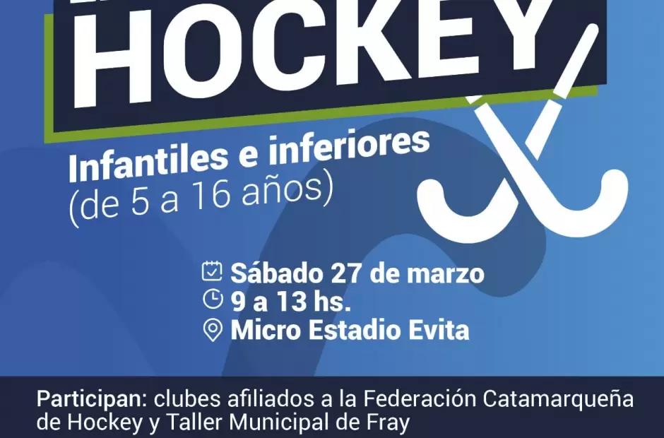 Será de 9 a 13 horas y participarán los clubes afiliados a la Federación Catamarqueña de Hockey y Talleres Municipales de Fray.