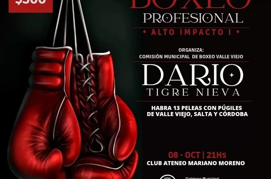 Hoy a partir de las 21 horas en el Club Ateneo Mariano Moreno se realizará la la velada amateur interprovincial y profesional “Alto Impacto”, organizada por la Comisión Municipal de Boxeo de Valle Viejo.