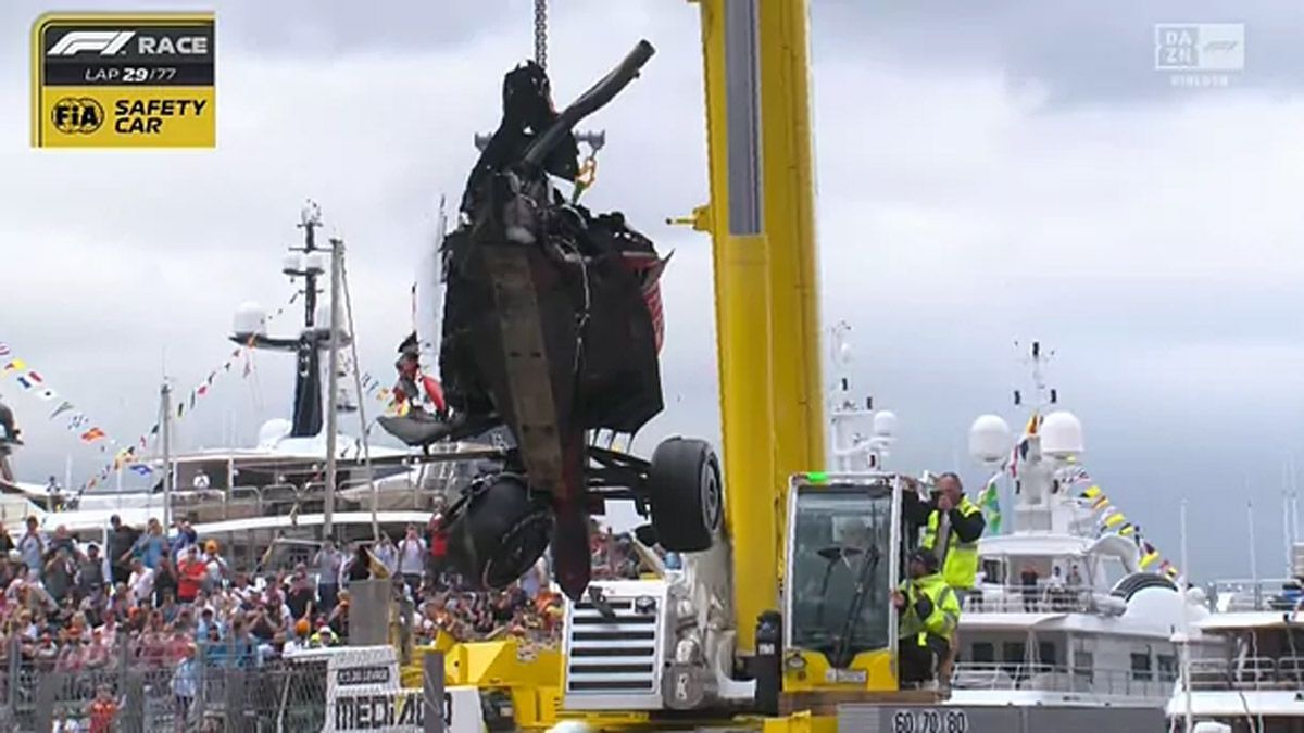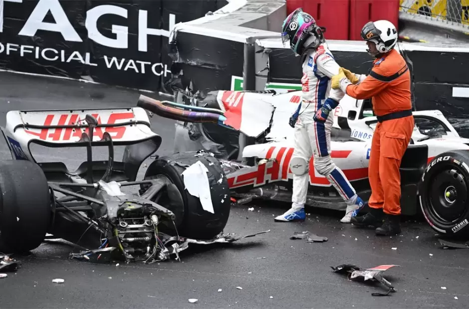 Las escalofriantes imágenes de la TV mostraron cómo Mick Schumacher se estrelló contra un muro en el trazado del Gran Premio de Mónaco y su monoplaza quedó destrozado.