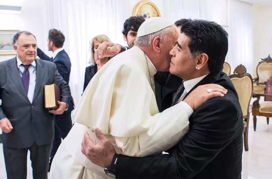 Francisco recordó además el encuentro que tuvo en 2014 con Maradona, durante una actividad de la fundación Pontificia Scholas Occurrentes.