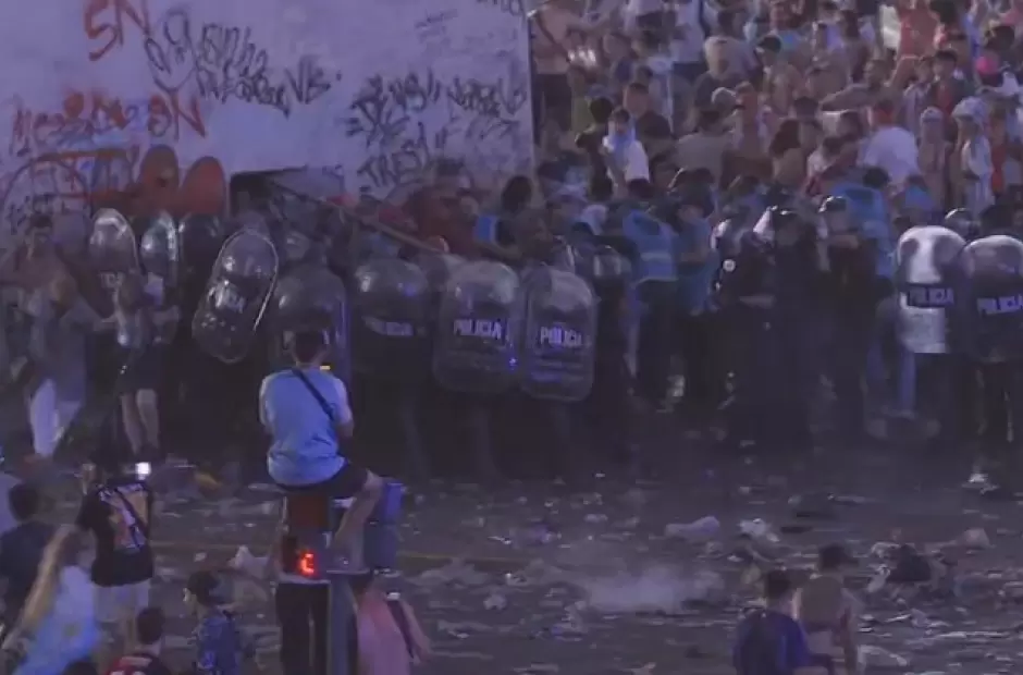Graves incidentes entre la Policía y un grupo de hinchas, tras los festejos por la Copa del Mundo