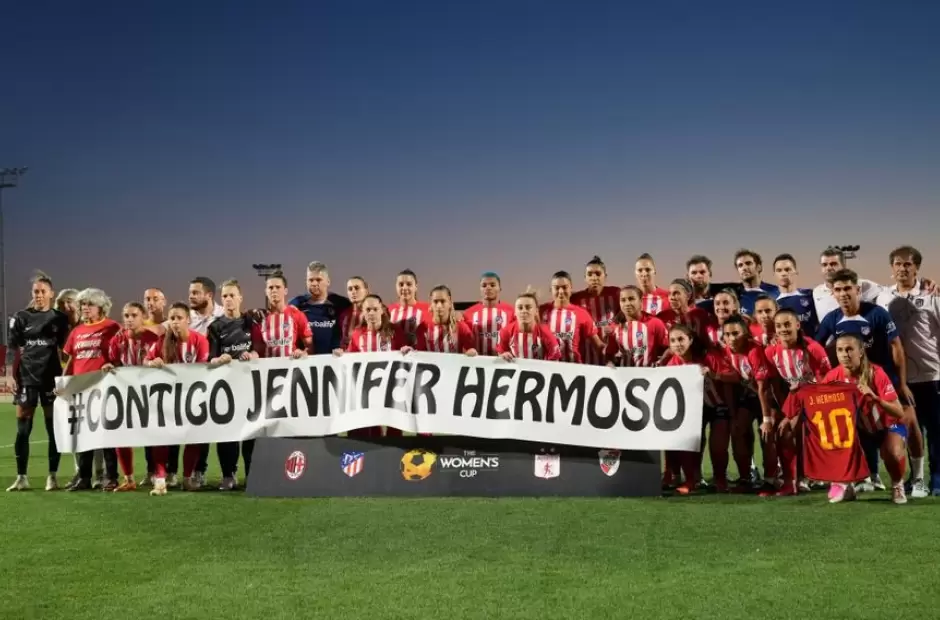 La atacante del Pachuca de México se sentó en el palco de la cancha ubicada en el Centro Deportivo Wanda Alcalá de Henares, donde el Madrid hizo de local. Durante todo el partido recibió una catarata de gestos de apoyo: las jugadoras usaron muñequeras que decían "Contigo Jennifer Hermoso", misma leyenda que tenía la bandera que exhibieron antes de empezar el encuentro.