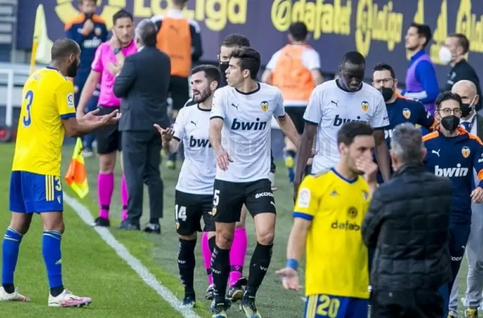 En la continuidad de la Liga de España, Cadíz recibió al Valencia. La novedad es algo insólito, los jugadores del Valencia dejaron el campo de juego a los 31 minutos del primer tiempo.