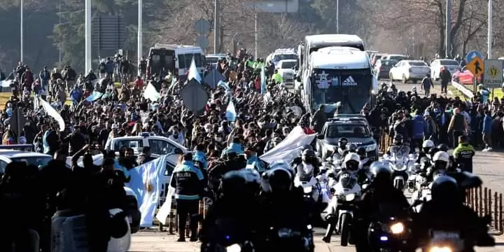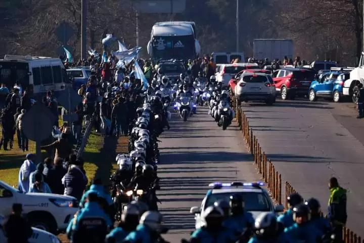 Los campeones fueron trasladados en un par de micros que los llevaron al predio de Ezeiza, lugar en el que serán recibidos por una multitud.