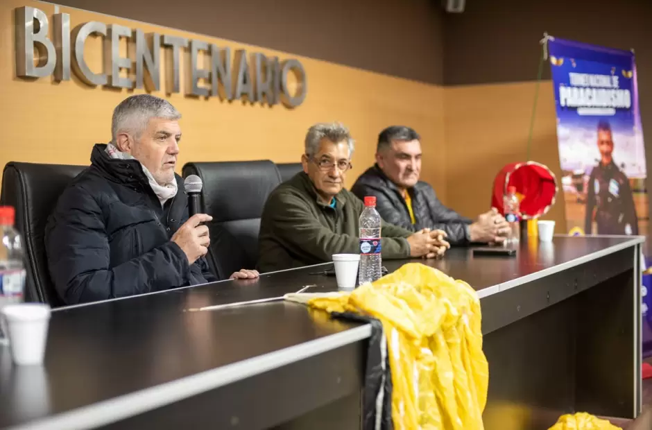 Miembros de “Paracaidismo Catamarca” presentaron el Torneo Nacional de Paracaidismo Precisión de Aterrizaje "Copa Luis Alberto Tapia", en el Estado Bicentenario. En la oportunidad, la presentación fue acompañada por el ministro de Cultura, Turismo y Deportes, Roberto Brunello, junto al secretario de Deportes de la Municipalidad de Fray Mamerto Esquiu, Gastón Vaquel.