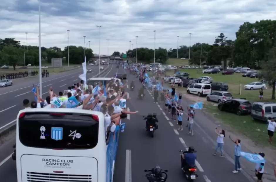 El plantel de Racing pasó la noche en Asunción y regresó a Buenos Aires en un vuelo desde el Aeropuerto Internacional Silvio Pettirossi de Luque. El avión arribe a Ezeiza cerca de las 17hs, donde una multitud de seguidores está lista para continuar con los festejos.