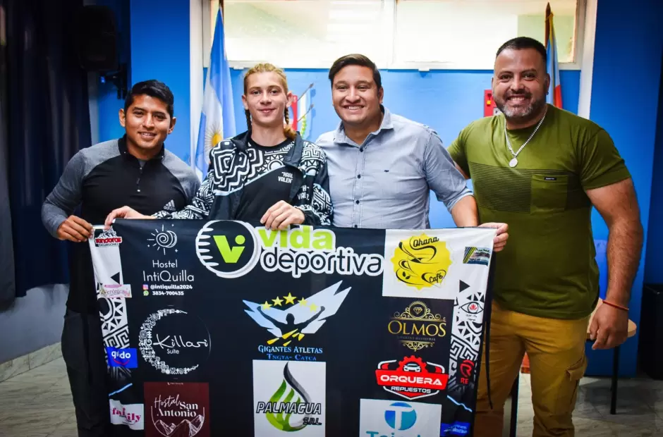 El intendente de Tinogasta, Ernesto Andrada, junto al secretario de Deportes y Recreación, Hugo Nieto, y el profesor Cristian Ávila, responsable de la escuela municipal de atletismo, encabezaron una conferencia de prensa para reconocer los destacados logros de Pedro Valentín Olmos. Este joven deportista tinogasteño se consagró campeón nacional en Salto Triple U16 y subcampeón argentino en Salto en Largo, poniendo en alto el nombre de nuestra ciudad.