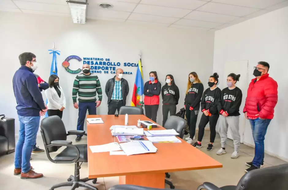 El equipo de básquet femenino de Red Star y el presidente de la institución Andrés Montenegro fueron recibido por el Ministro de Desarrollo Social y Deporte Maximiliano Rivera y la Secretaria de Deportes y Recreación María Sylvia Jiménez, junto al Director Provincial de Rehabilitación Deportiva y Social Pablo Lagoria, horas antes de su viaje a Córdoba a disputar las semifinales del Torneo Federal Femenino, de la Confederación Argentina de Básquetbol, en el Estadio "Ángel Sandrin" de Instituto de Córdoba.