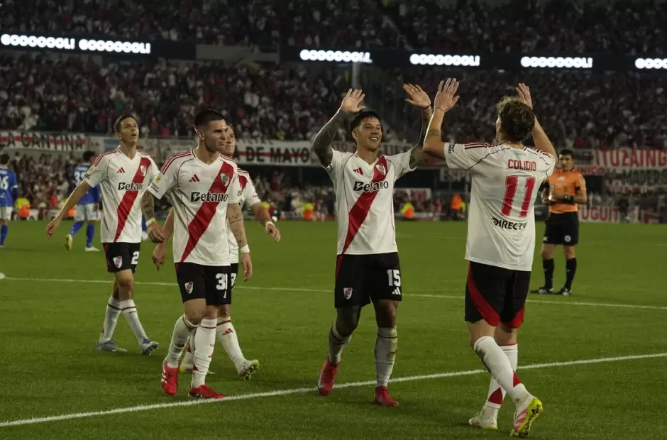 Franco Armani; Fabricio Bustos, Lucas Martínez Quarta, Paulo Díaz, Marcos Acuña; Nacho Fernández, Enzo Pérez, Kevin Castaño; Franco Mastantuono, Sebastián Driussi y Facundo Colidio.