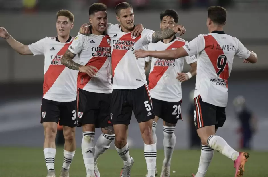 River: Franco Armani; Robert Rojas, Felipe Peña Biafore, David Martínez, Milton Casco; Enzo Fernández, Enzo Pérez; Santiago Simón, Benjamín Rollheiser, Agustín Palavecino; y Julián Álvarez. DT: Marcelo Gallardo.