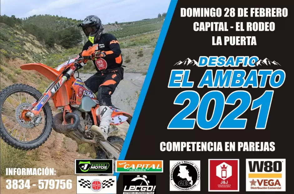 Está todo listo para lo que será este próximo domingo 28 de febrero para la 2da edición del “Desafío El Ambato”, competencia de enduro que tendrá la particularidad de correrse en parejas y que albergará a las categorías Senior A y B, Junior A y B, Master A, B, C y D, Principiantes, Enduro Calle y Promocional.