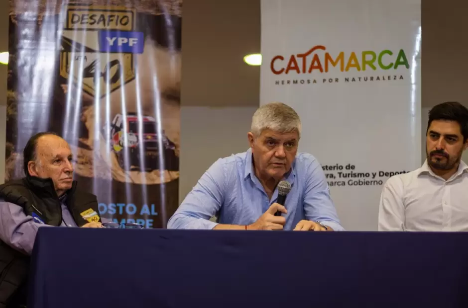 Con presencia del ministro de Cultura, Turismo y Deporte de Catamarca, Roberto Brunello, el organizador de la 4ta fecha del Mundial de Rally Raid, David Eli y el secretario de Turismo de Belén, Nicolás Reynoso, se presentó en este martes 22 de agosto en la Sala Ezequiel Soria del Cine Teatro Catamarca, la 11ª edición del Desafío Ruta 40, competencia de carácter internacional que visitará la provincia desde el martes 29 de agosto y por el transcurso de cuatro días.