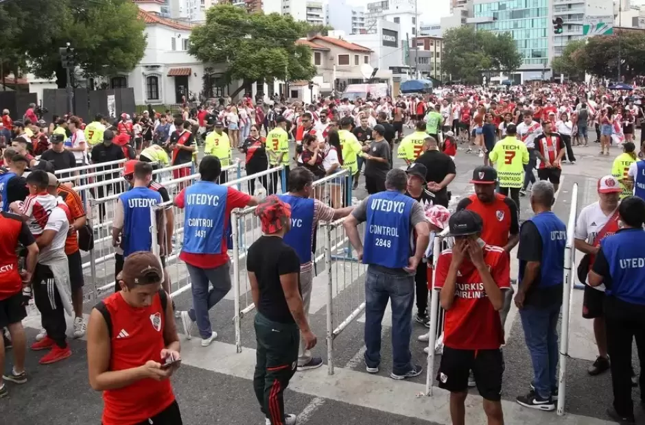 La fuerza inmediatamente se desplegó para evitar que la situación pase a mayores y el tránsito sobre Avenida del Libertador tuvo que ser cortado momentáneamente. Especialmente para este partido, se destinaron 1500 efectivos de seguridad.