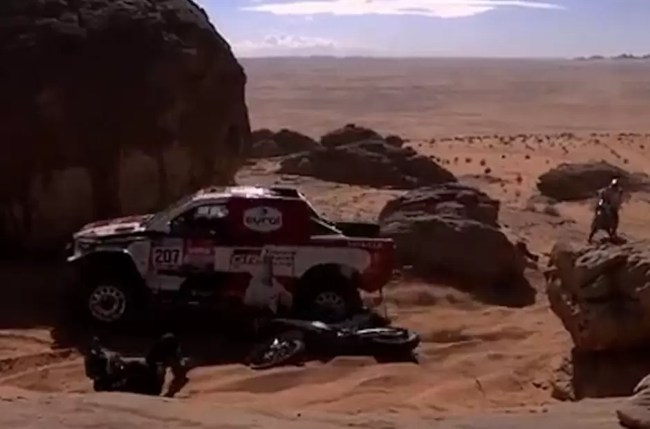 Los hechos insólitos son característicos en todos los Rally Dakar debido a que es una prueba de largo aliento y de extrema exigencia para todos los competidores. En la segunda etapa de la edición 2022, que por tercera vez se realiza en Arabia Saudita, ocurrió una situación llamativa porque involucró a un piloto con mucha experiencia como Giniel de Villiers, que con su camioneta atropelló al motociclista César Zumaran.