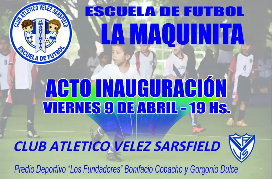 El Club Vélez Sarsfield de La Capital catamarqueña realizará el acto inaugural de la escuela de fútbol de la institución, "La Maqunita". La misma será este viernes desde las 19.00 en el predio "Los Fundadores" ubicado en Bonifacio Cobacho y Gorgonio Dulce.