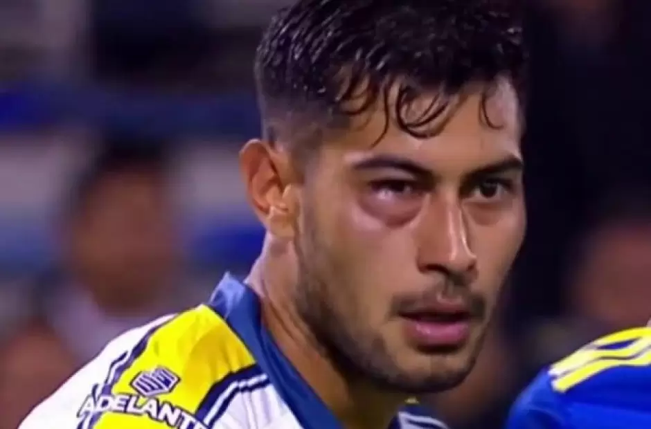 El volante del Xeneize le dio un golpe en la cara al jugador del Canalla, quien rápidamente sufrió la inflamación del ojo.