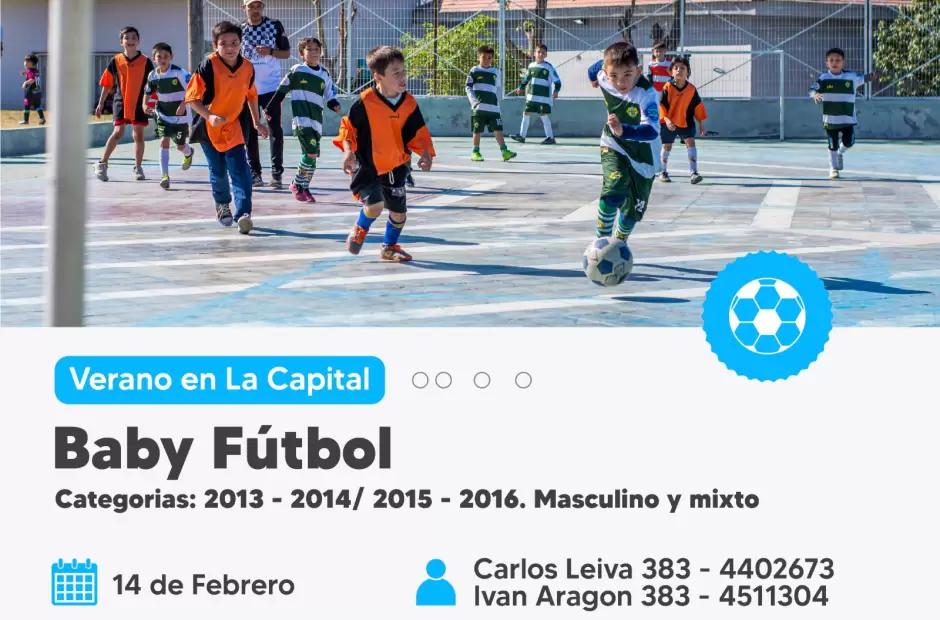 La competencia será para las categorías 2013 a la 2016 y fútbol mixto. La fecha de inicio es para el 14 de febrero y para la inscripción comunicarse con el profe Carlos Leiva al 383-4402673 o con el profe Iván Aragón al 383-4511304.