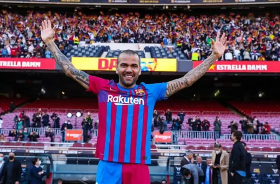 El lateral brasileño, de 38 años, fue ovacionado por los hinchas blaugranas en el estadio Camp Nou, donde firmó un contrato hasta junio de 2022.