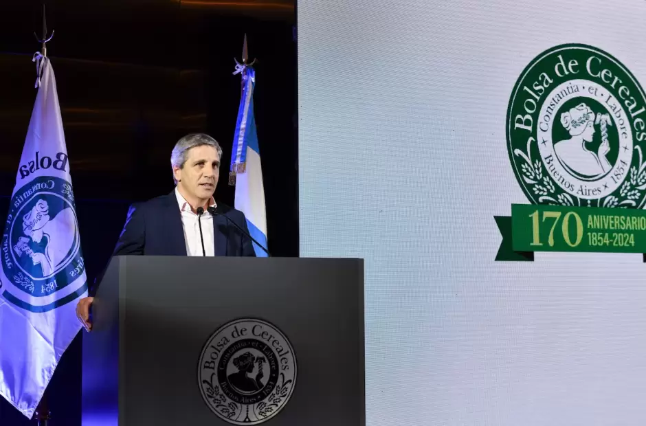 Después de que se conociera el dato de inflación de julio, el Ministro de Economía, Luis Caputo, habló en el aniversario de la Bolsa de Cereales y se comprometió a bajar impuestos, pero les pidió a los empresarios que se adhieran al blanqueo de capitales.