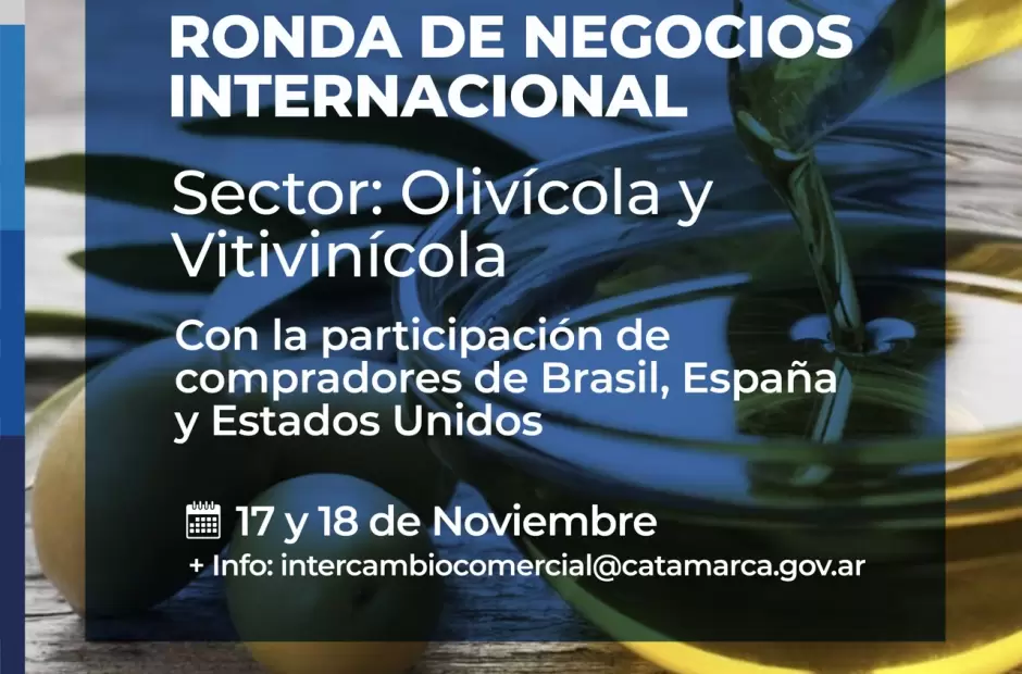 La Dirección de Intercambio Comercial a cargo del Lic. Gabriel Molina convocó a todas las empresas del sector olivícola y vitivinícola de la provincia a participar de la "Ronda de Negocios Virtual Expo Productiva 2da Edición”.