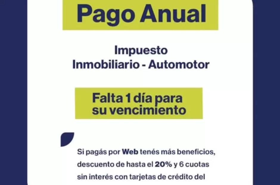 ARCA recordó que este lunes vence el plazo para abonar el pago anual del impuesto automotor e inmobiliario. Hay beneficios de hasta el 20% y planes en cuotas con tarjetas del Banco Nación.