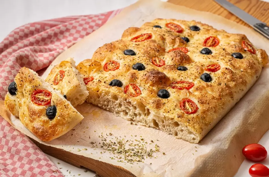 La diferencia entre la Focaccia y la pizza se encuentra en el tiempo de fermentación y el grosor de la masa, además de los condimentos. Te dejamos la receta clásica para que prepares en casa y disfrutes con tu salsa favorita o tu plato de pastas.