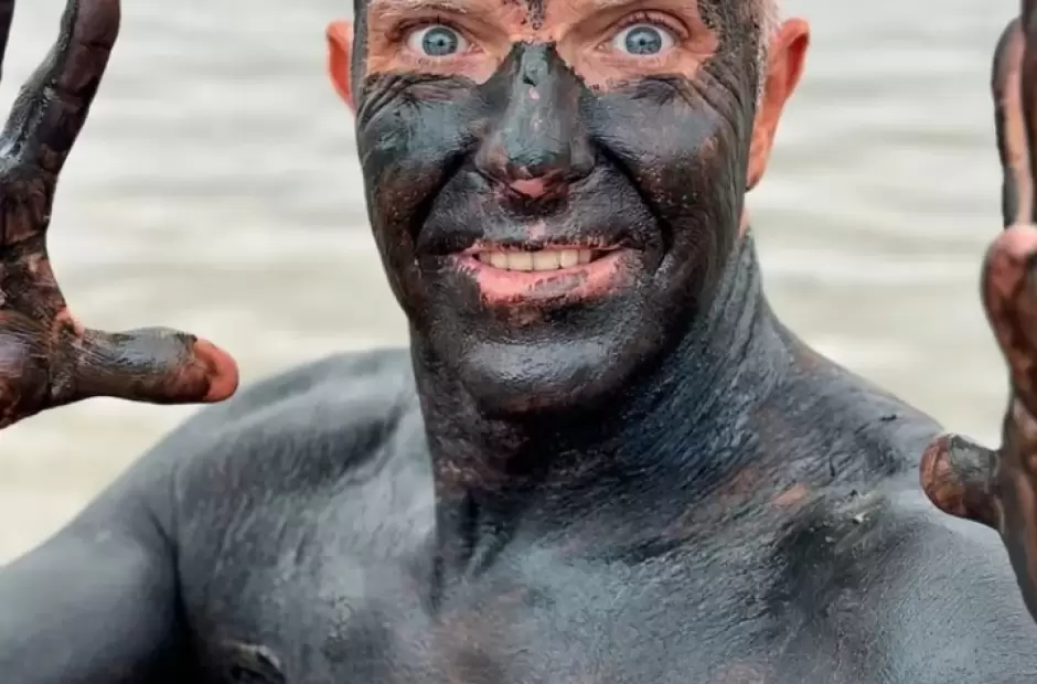 En la siguiente foto, la modelo lució completamente cubierta por el lodo. Y luego sumó otra en la que se lo veía a Fantino en el mismo modo que a ella. “Dijeron que era bueno, así que nos pusimos un poquito de lodo”, escribió junto a un emojie de risa con llanto. En la siguiente imagen, donde se lo veía al conductor en primer plano, Mosqueira elogió a su marido: “Hasta en lodo sos un bombón”.