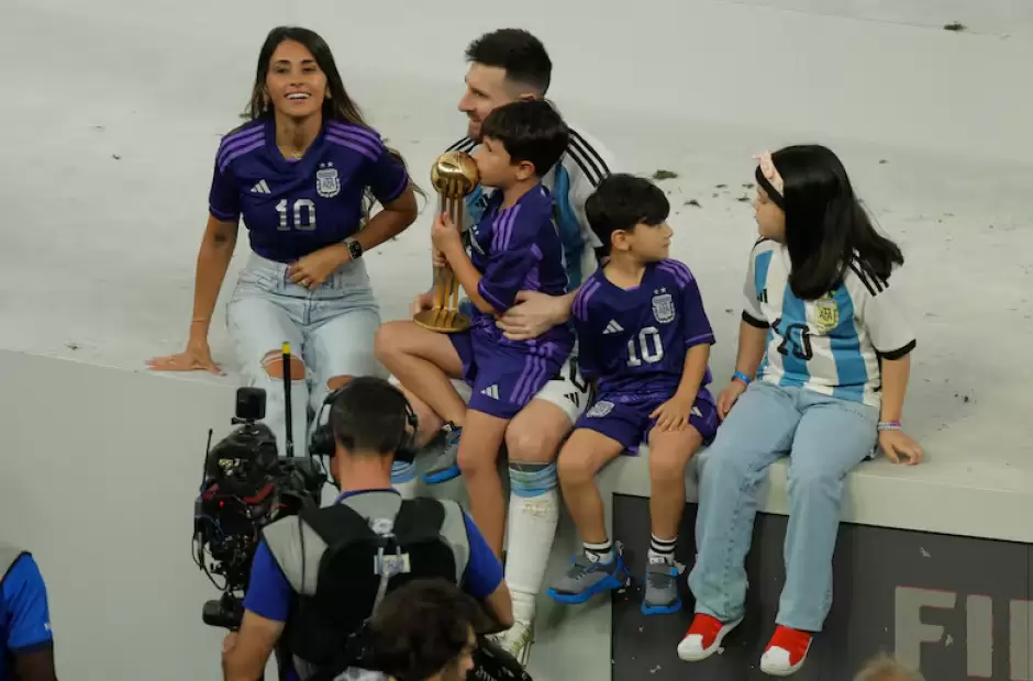 En un video donde se destaca el sonido ambiente del mismo, se la ve a Antonela a un costado del futbolista, Thiago masajeándole los hombros y Mateo, con el trofeo del mejor jugador del Mundial, abrazándolo a Leo Messi y mostrando su lado más sentimental al expresarle que lo amaba.