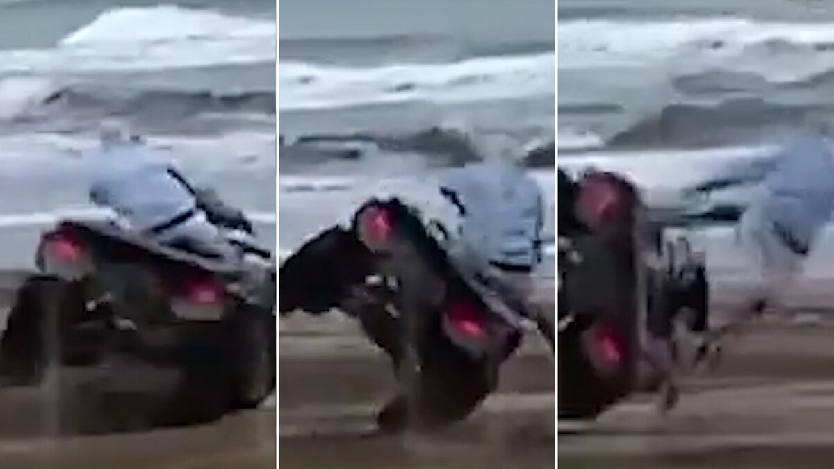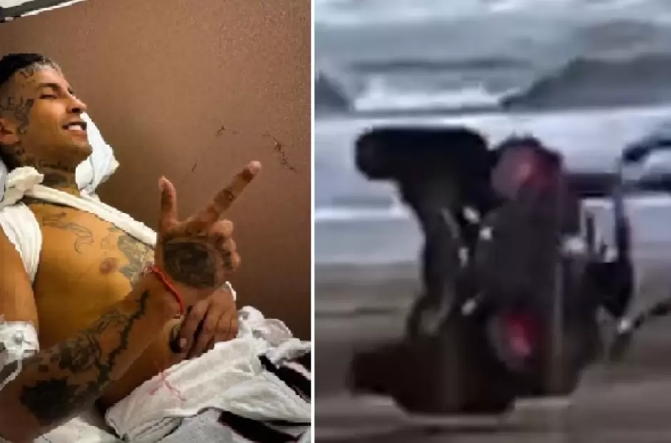El cantante circulaba por la playa, en el sector conocido como La Frontera, cuando el cuatriciclo se frenó en la arena y el joven salió despedido, ante el estupor de los presentes, algunos de los cuales pudieron grabar la escena y la subieron a las redes sociales, donde rápidamente se viralizaron.